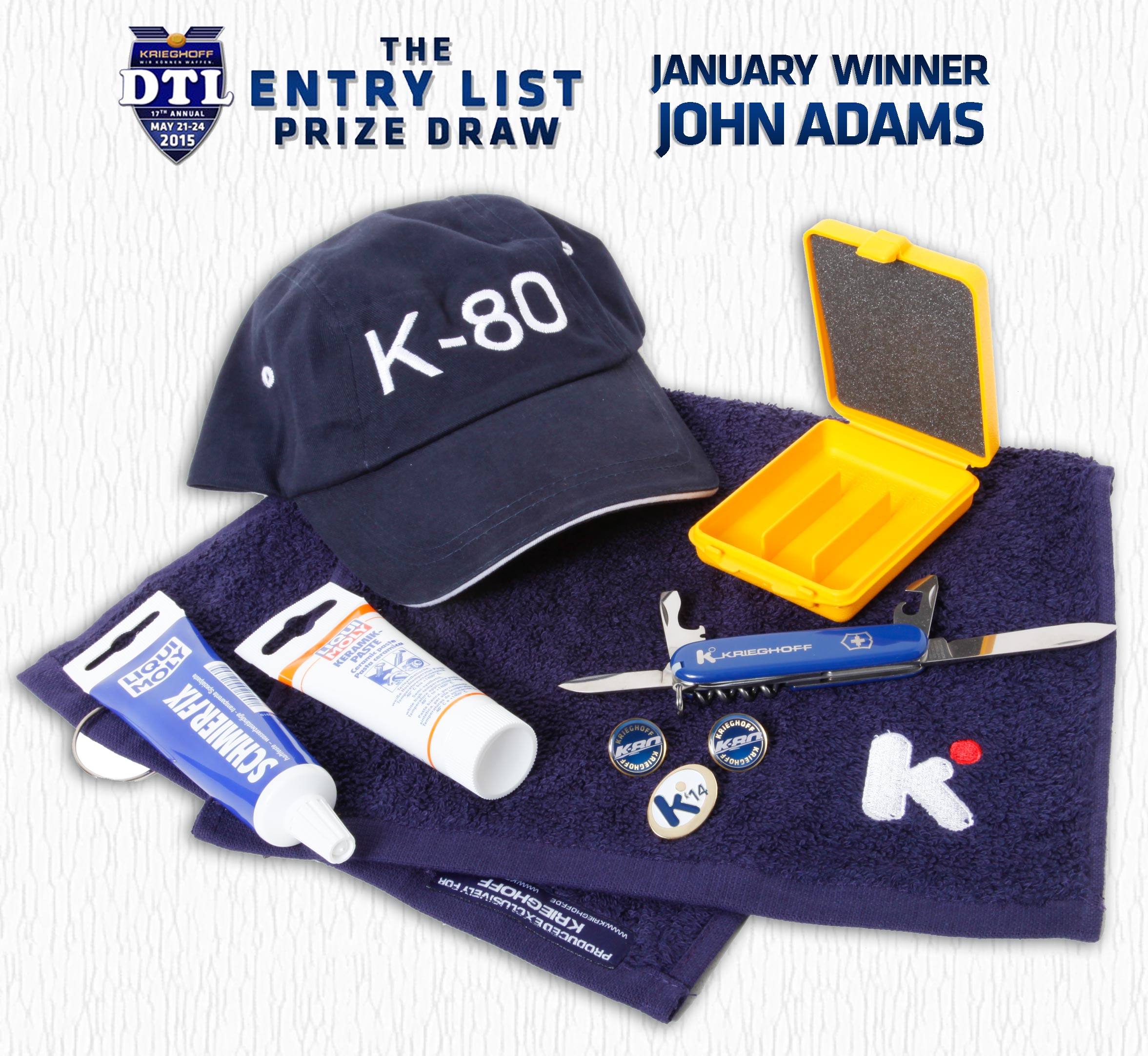 Congratulations to John Adams for winning the Entry List Prize Draw. The draw took place on 30th January with the combined entry lists of all 3 events at the 2015 Krieghoff DTL. The lucky number was 261, which was assigned to John Adams, who now claims a prize of Krieghoff Goody Bag. More information on the draw on the Krieghoff DTL Section here: Krieghoff DTL Section.